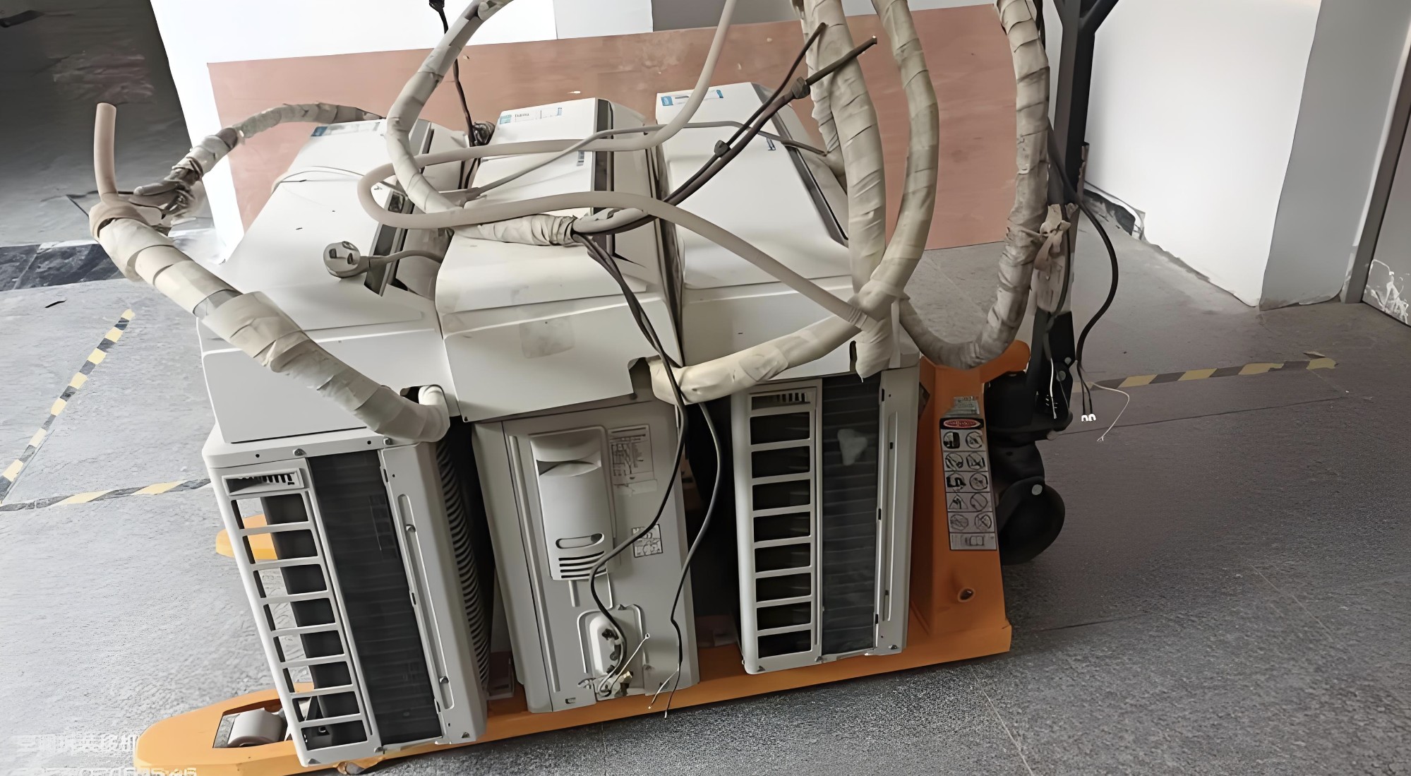 拆卸室外機需要兩個人操作。首先,用尼龍繩將室外機的一端系在中間,另一端系在陽臺的牢固位置。擰開外機連接高壓管鎖母后,用準(zhǔn)備好的密封膠帶保護外機連接接頭的絲紋,然后戴上二次密封帽。用錐子從室外機上拆下控線,區(qū)分電線位置。然后拆下固定膨脹螺絲,使用空調(diào)10年以上。經(jīng)過陽光、雨水和腐蝕,很難用扳手?jǐn)Q下四個固定螺絲。在高層建筑中也很難用鋼鋸切斷螺絲。最好的辦法是一個人扶住室外機,另一個人用扳手?jǐn)Q緊支架螺絲,連接支架一起拆下。拆卸時,高層建筑應(yīng)系好安全帶,腳應(yīng)踩實。如果有大風(fēng)頭,必須戴安全帽,防止樓上玻璃破碎撞到自己。使用的扳手應(yīng)用繩子系在手腕上,并與用戶協(xié)商,讓用戶勸說行人繞過,防止撞到行人。操作時要小心,任何物品都不能掉下來,否則后果會很嚴(yán)重。這種教訓(xùn)很多,不要有點粗心。