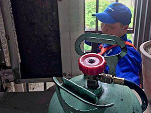 3、在冷媒罐下面加電子秤或者是用鉗流表、點溫計測量空調運轉電流或者吸排氣溫度,用來把握合適的冷媒追加量;把冷媒罐正向朝上擺放,打開復合壓力表開關,讓冷媒以“氣態(tài)”的形式加注到空調系統(tǒng)管路中。
