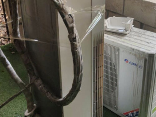 4、拆室外機:拆卸室外機時應(yīng)卸放的同時注意平衡避免振動搖晃,最后用塑料包好以便搬運。
