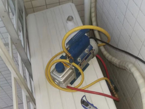 打開室外機罩,將充氟管的針頭連接到低壓口上,將金屬縮頭放到一個平穩(wěn)的地方。保持安全距離,維持較為安全了加注狀態(tài)。