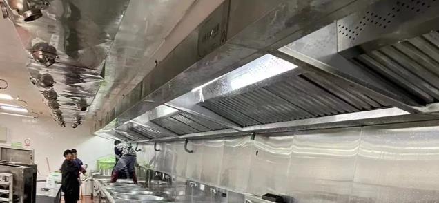 清洗油煙管道使用高壓水槍和專用清洗劑清洗油煙管道,確保管道暢通無堵塞。